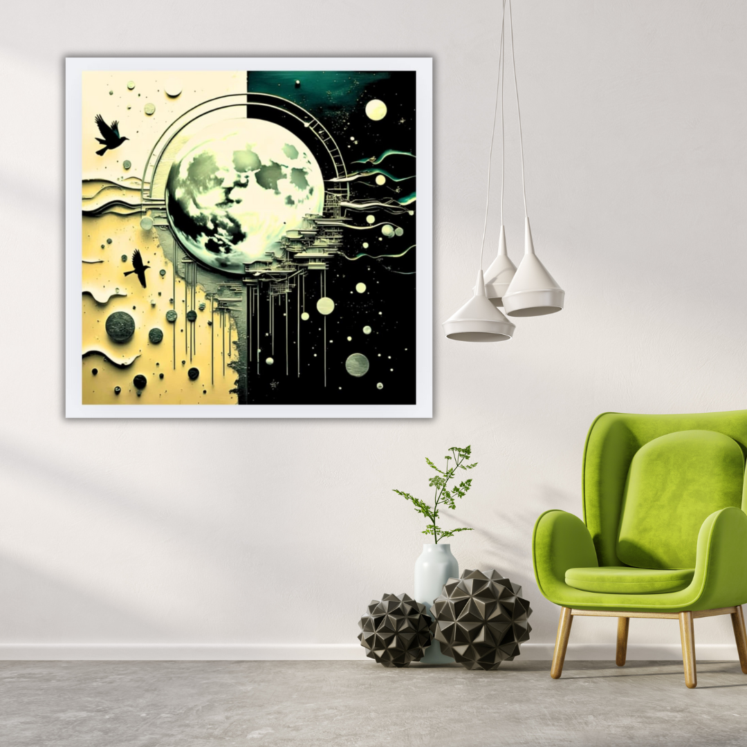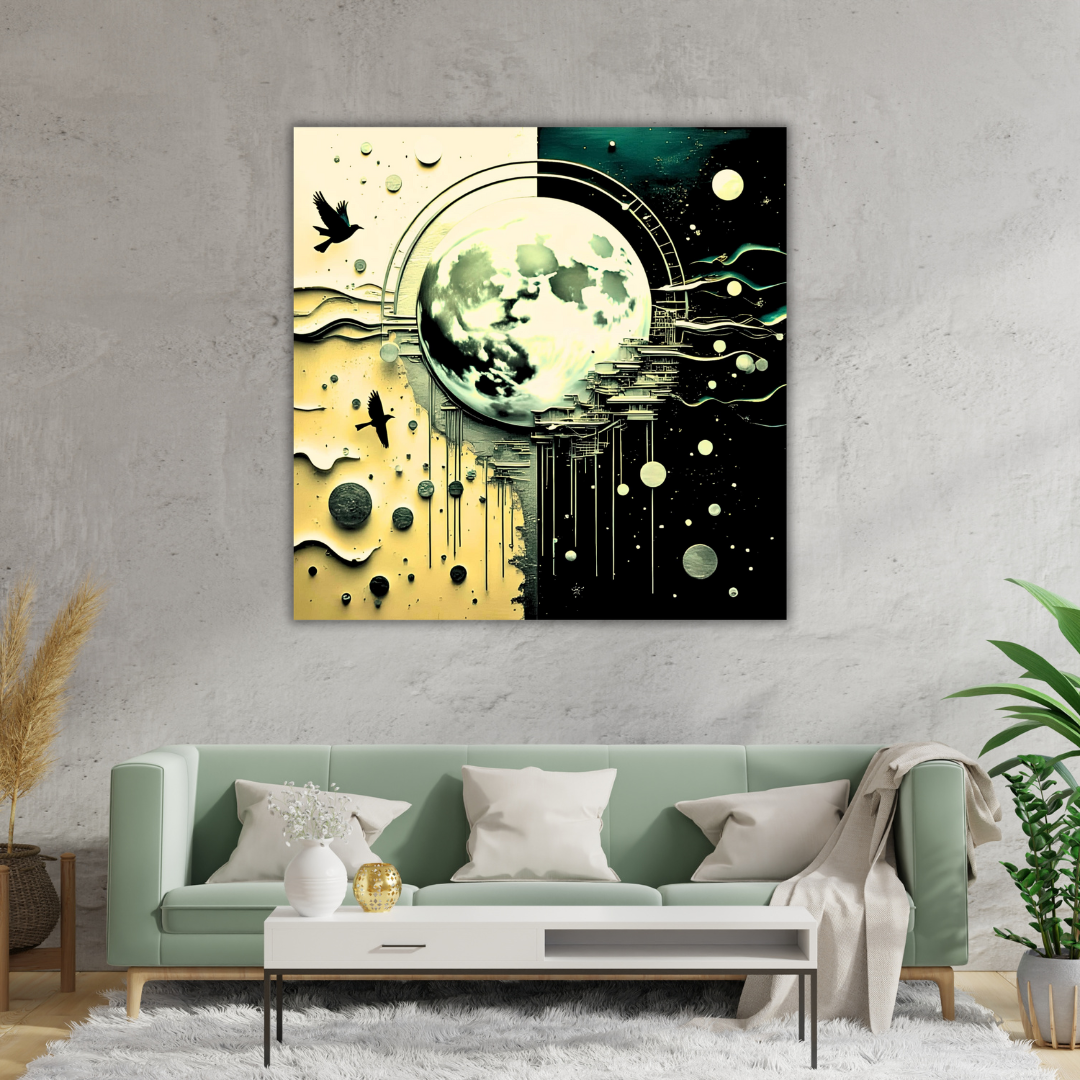 Šis kūrinys simbolizuoja nuolatinį virsmą, ribą tarp dienos ir nakties, tarp aiškumo ir nežinomybės. Puikiai tinka moderniam interjerui, suteikiant subtilaus jaukumo, šilumos bei meditacinės atmosferos.