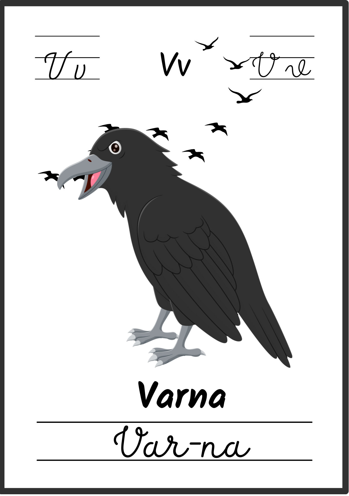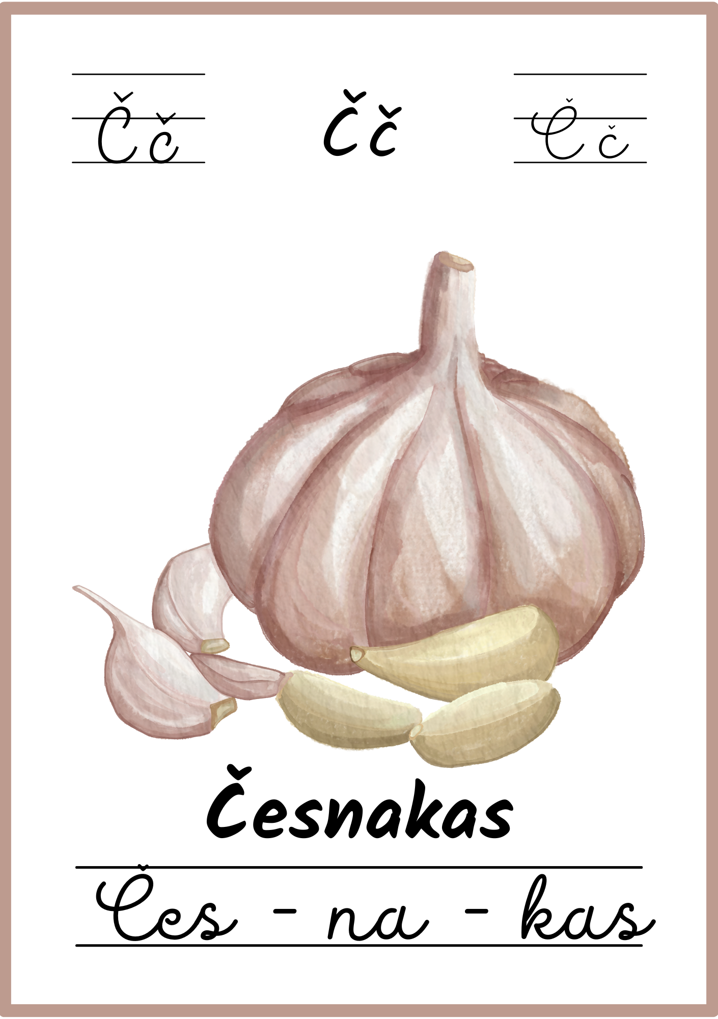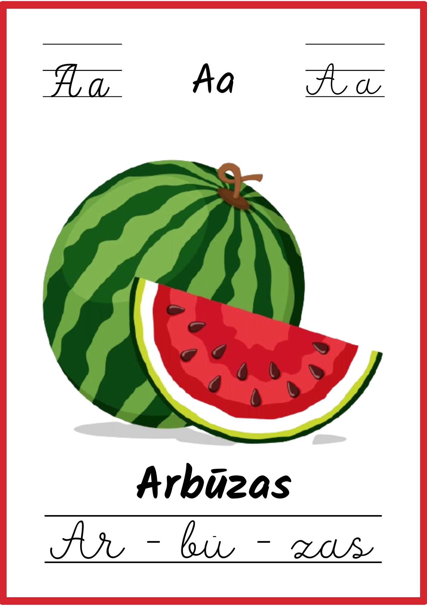Kiekviename plakate – aiškus paveikslėlis, lietuviškas žodis ir skiemenys, padedantys lengvai įsiminti raides bei naujus žodžius.