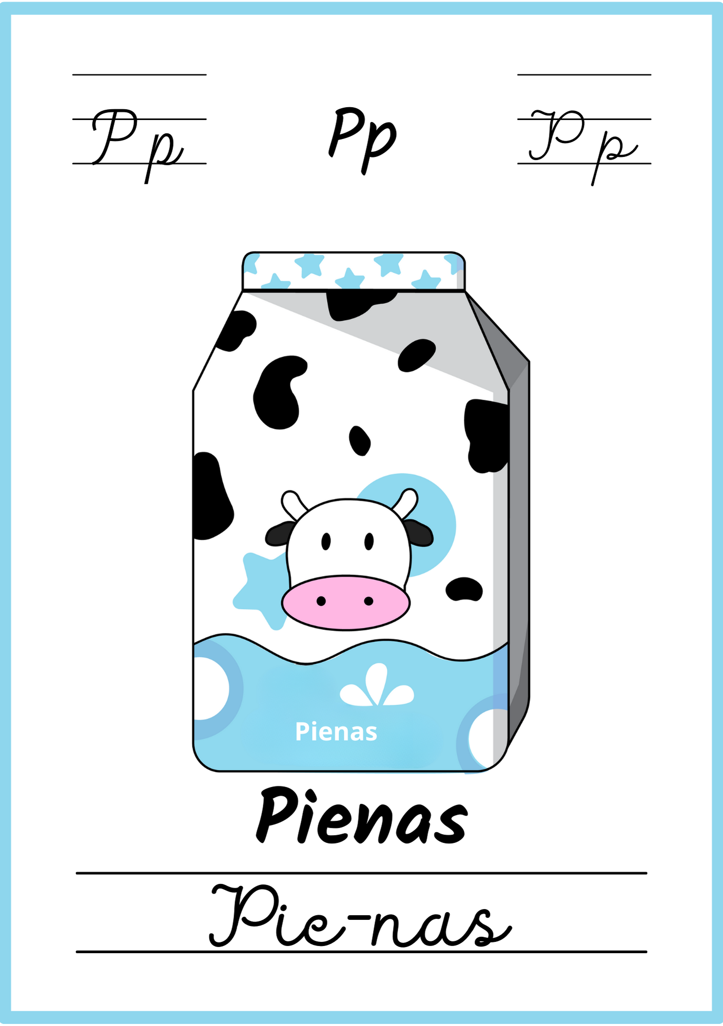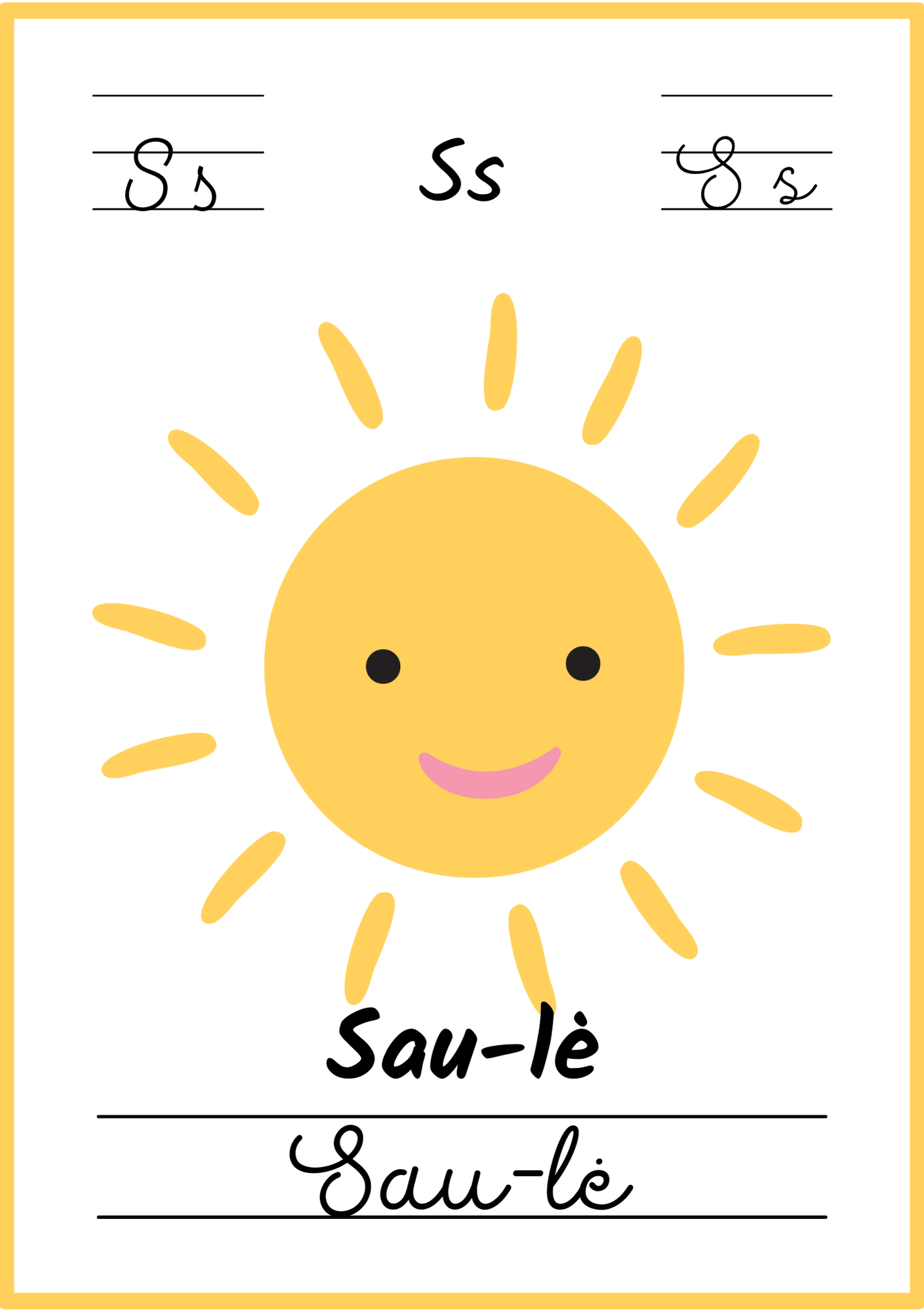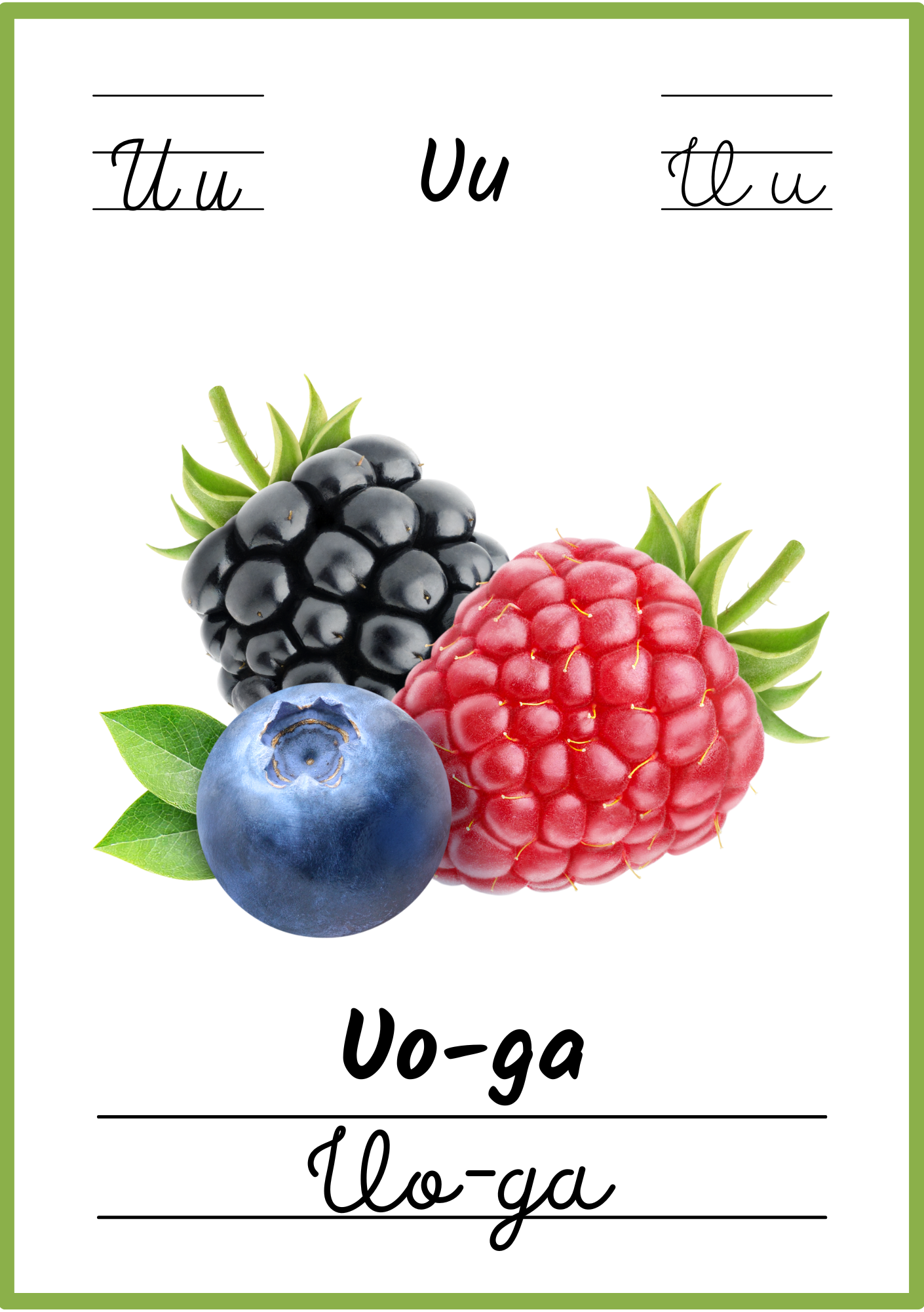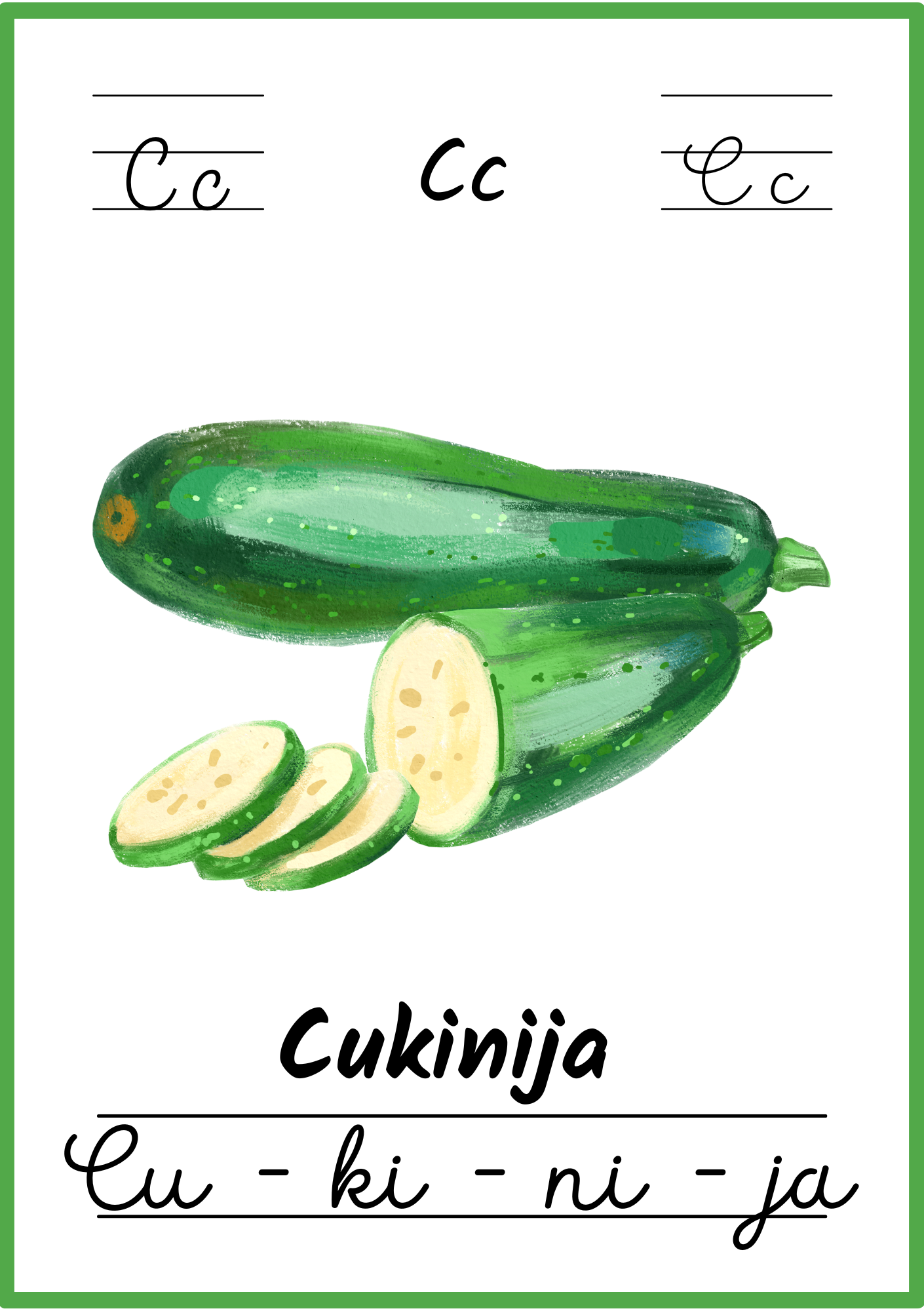 Kiekviename plakate – aiškus paveikslėlis, lietuviškas žodis ir skiemenys, padedantys lengvai įsiminti raides bei naujus žodžius.