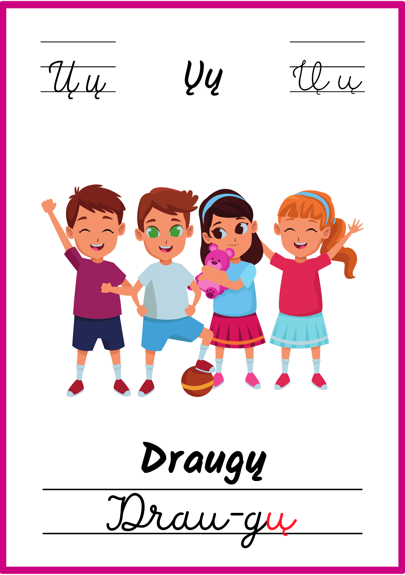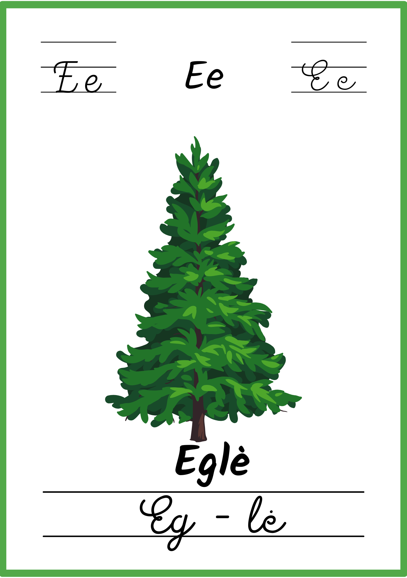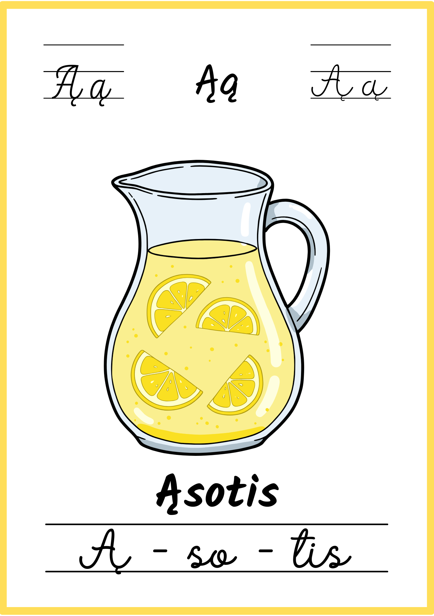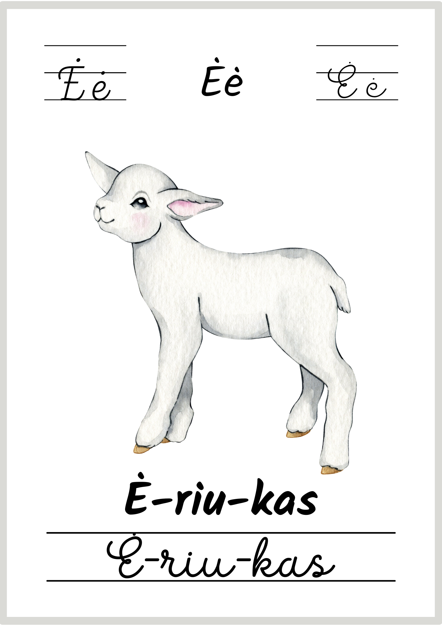 📚 32 plakatėliai su visomis lietuviškomis abėcėlės raidėmis.