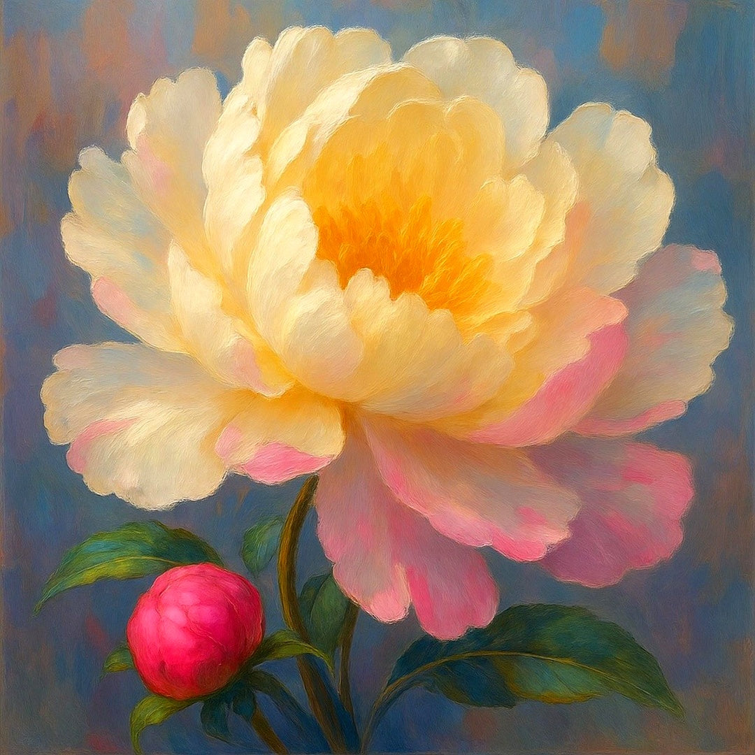 „Bijūno žiedas“ – tai švelnumo, grakštumo ir moteriškos stiprybės simbolis. Šis paveikslas perteikia akimirką, kai gamtos trapumas tampa grožio švente. Sodrios, bet šviesios spalvos tarsi kviečia sustoti, įkvėpti ir pasigrožėti gyvenimo žydėjimu. Kiekvienas potėpis – tai tarsi žvilgsnis į ramybę ir širdies lengvumą.