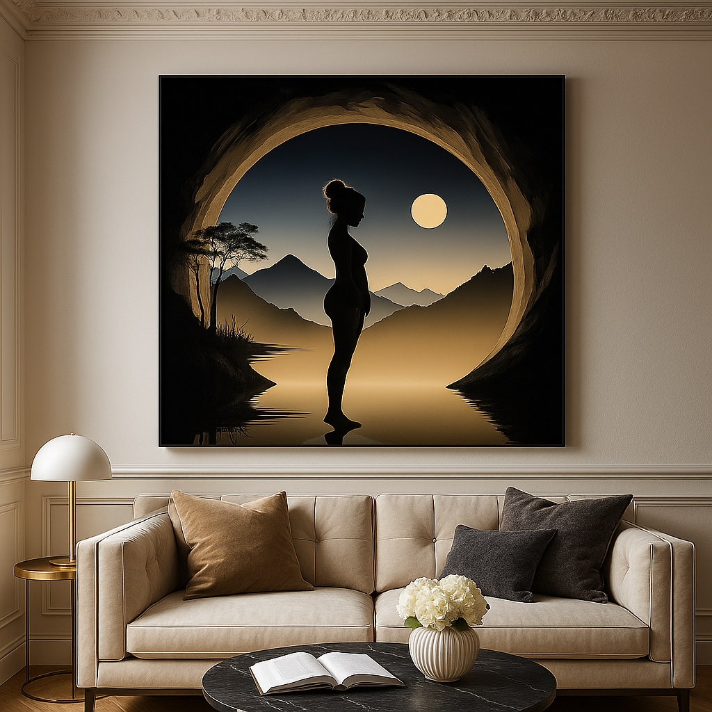 Šis paveikslas kalba apie paslaptį, intuiciją ir tą akimirką, kai sustoja laikas. Tobulas pasirinkimas interjerui, ieškančiam harmonijos ir gylio.