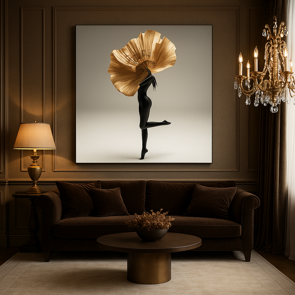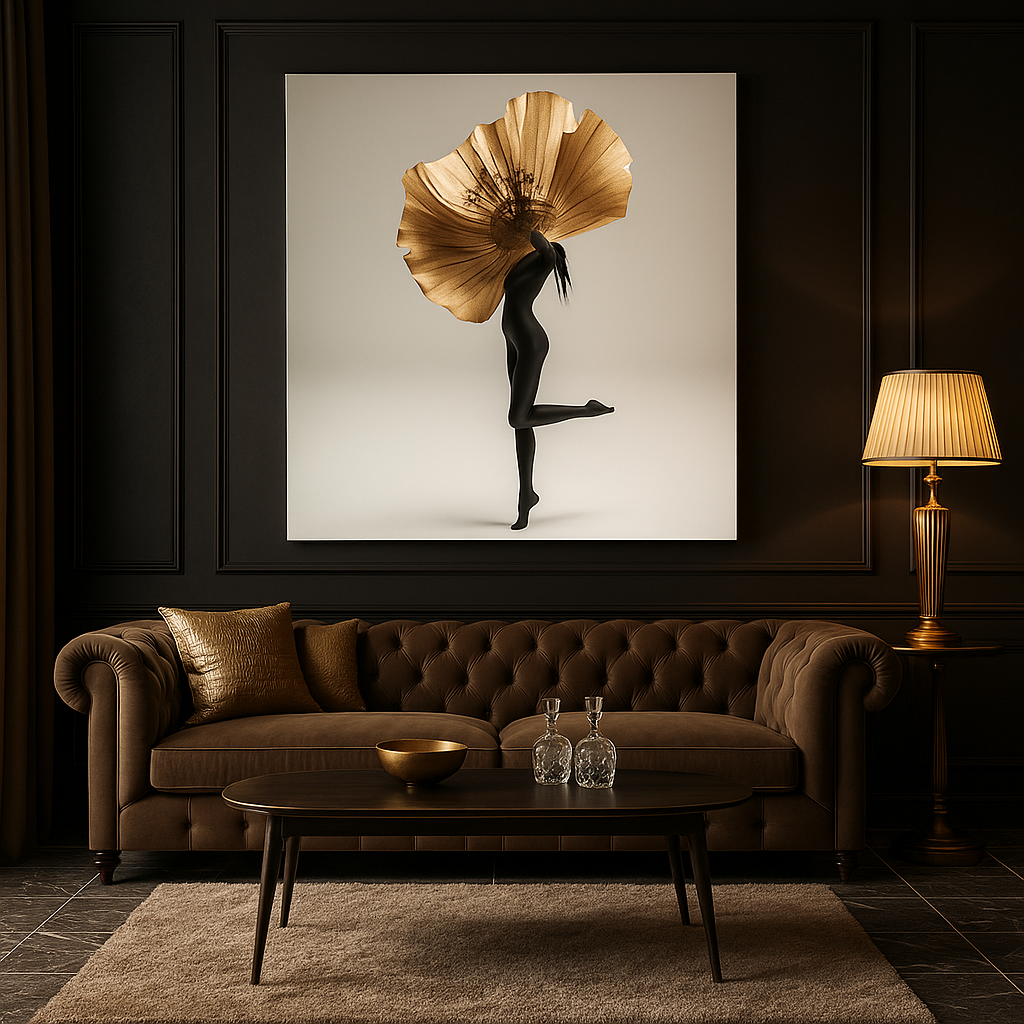 „Nuodėmingas Kūnas“ – tai drąsus ir jausmingas paveikslas, kuriame tamsus siluetas susilieja su gėlės švelnumu. Kūrinys, kviečia pajusti paslaptį ir geismą už formos ribų.